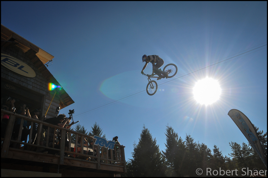 It was so tough to pick one image of the 30 or so edits from today’s Teva Best Trick event at Crankworx but I hope you’ll like this one and that it will keep you interested in coming back and ultimately interested in my post event Crankworx gallery. This is one of those events in which the photographers outnumber the competitors, and today it felt like 3-1, the RedBull Joyride event this weekend is sure to be a glass fest. It is interesting to see so many pros in one place, everyone seeking out their unique vantage point, but ultimately turning their lenses to the same subject. One of the most interesting experiences I have had in photography is how different photographers see and approach the same subject. It hits me every time I look at the work of others who have been at the same event as I have. This is one of those things that makes photography so compelling but also humbling. It can be difficult to look at the work of others and see so clearly the elements of my own work that needs something more.