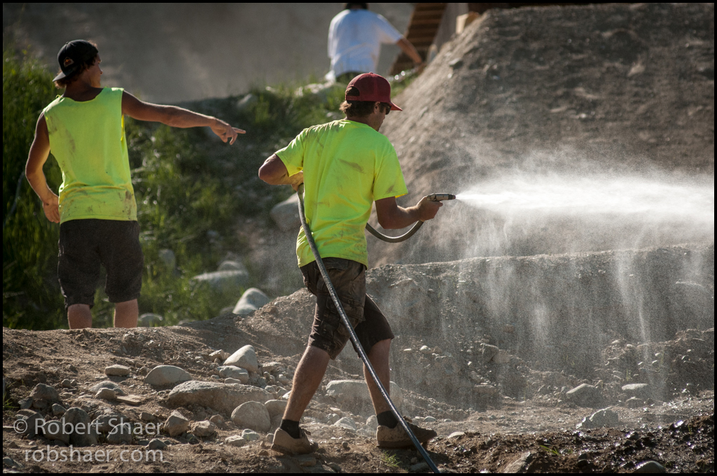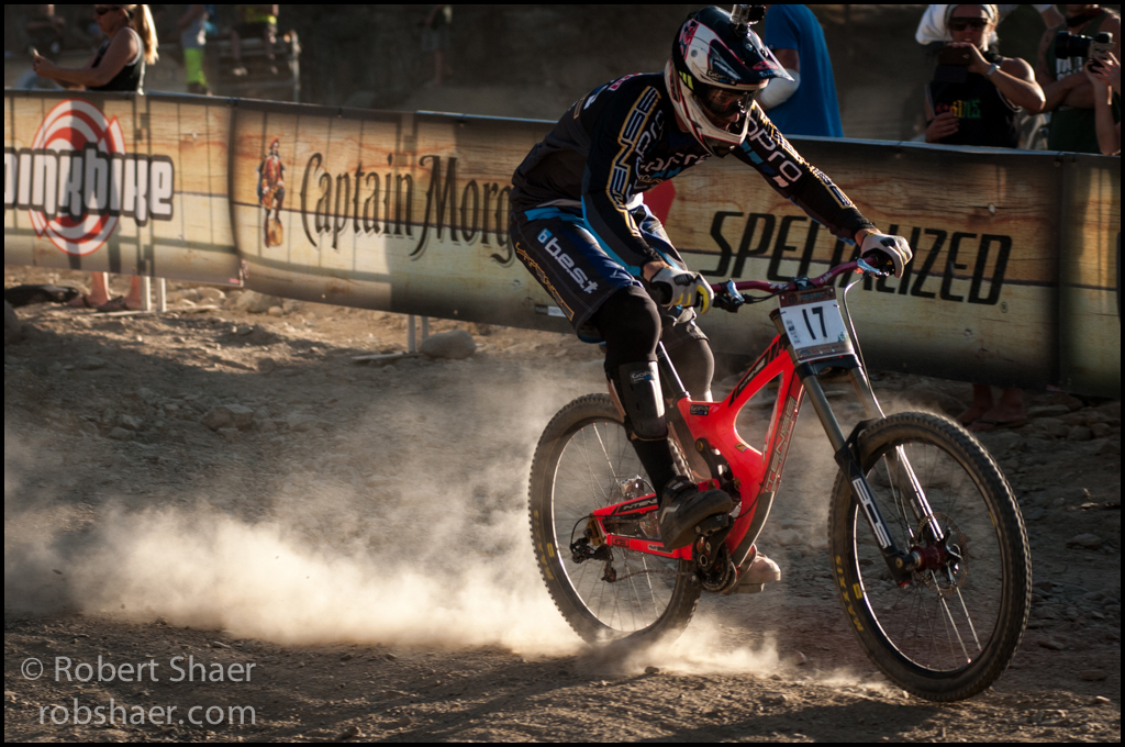 This morning, between editing photos and sips of coffee, I have been fighting a losing battle. It is dry in Whistler, the fire hazard is listed as extreme, the dust is everywhere and it is saturating. My hair feels like straw and every sip from my water bottle includes what feels like a mouth full of grit. Cleaning myself is one thing, but dust is especially hard on camera equipment. It gets into everything and glass can act like a magnet for dust looking for a surface to land on. Dust requires constant maintenance; gotta keep your gear clear to get the best from it, and I think we can all agree that the challenges that come with trying to capture a mountain biker 20-30 feet in the air or another deep in a berm at 50km/hr are enough without battling the elements as well. But dust is also beautiful, it captures light and creates an aura of place and experience. These are a few shots from Tuesday on Whistler shot in and around the Garbanzo DH course and through the dust.