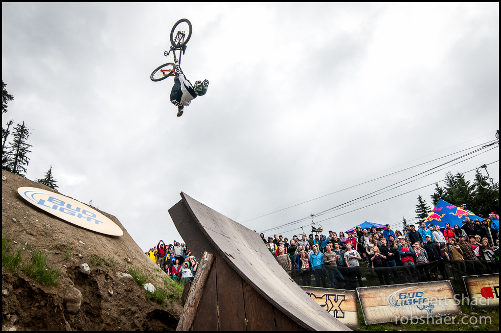 This year Crankworx was also a tremendous learning experience in adapting to challenges. Leading up to Whistler I was starting to notice that my camera, a Nikon D300s, was not performing quite as expected and my auto focus was starting to act erratically and unpredictably especially when using the otherwise exceptional Nikkor 14-24 f2.8. While I have since upgraded my camera body, more on this later, on event week my ‘gear frustration’ was at a high point and I ended up shooting on manual focus much of the week when using the wide glass. It is a testament to how talented and hard working sports photographers were prior to auto focus, power drives and long before the digital era.