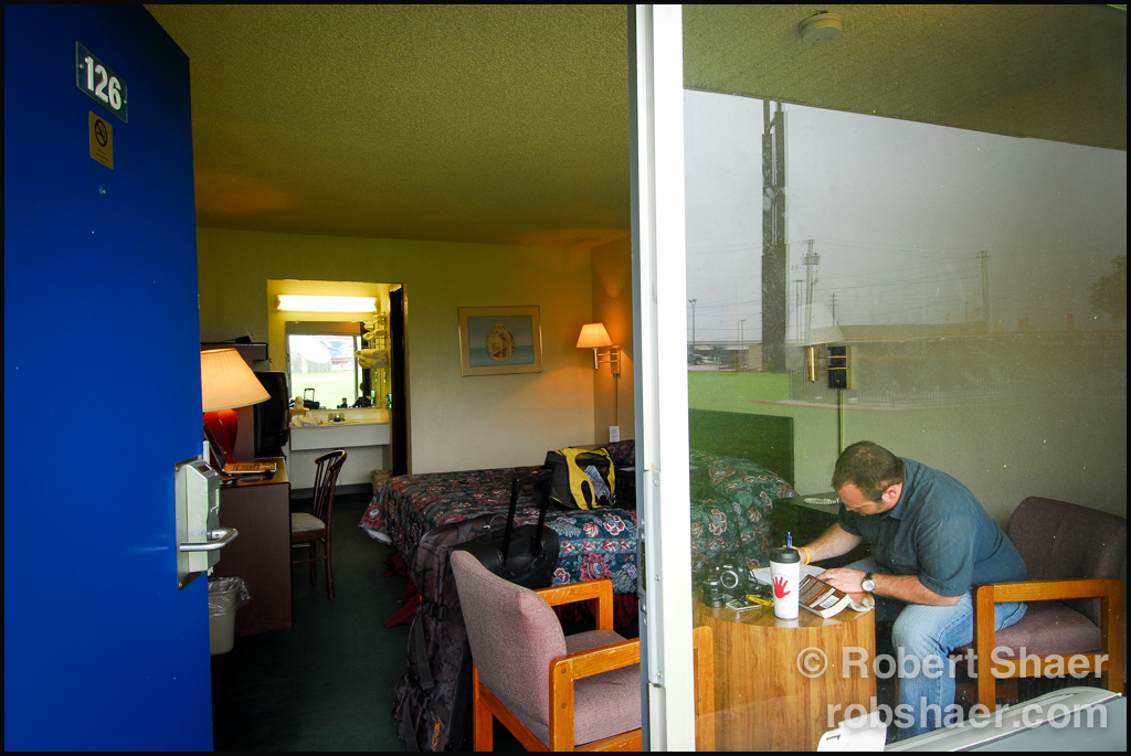 These photos were not a deliberate antithesis of the marketing photos I was sent to make, rather an attempt to share my experience with those who had a difficult time imagining what life on the road was like for myself and my colleagues. It was also an attempt to keep things interesting and entertaining as the redundancy of the daily check in and check out of nearly identically furnished rooms wore on after weeks on the road. In between the daily move from one hotel to another, of room shoot after room shoot, we struggled greatly to preserve some degree of normal life.